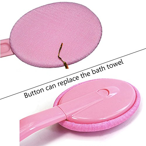 Product Details:Material:ABS handle +Polyester fiber cloth; Size: 37cm /14.56 in;Color :Blue and Pink ;Package included:2 x Bath brush;