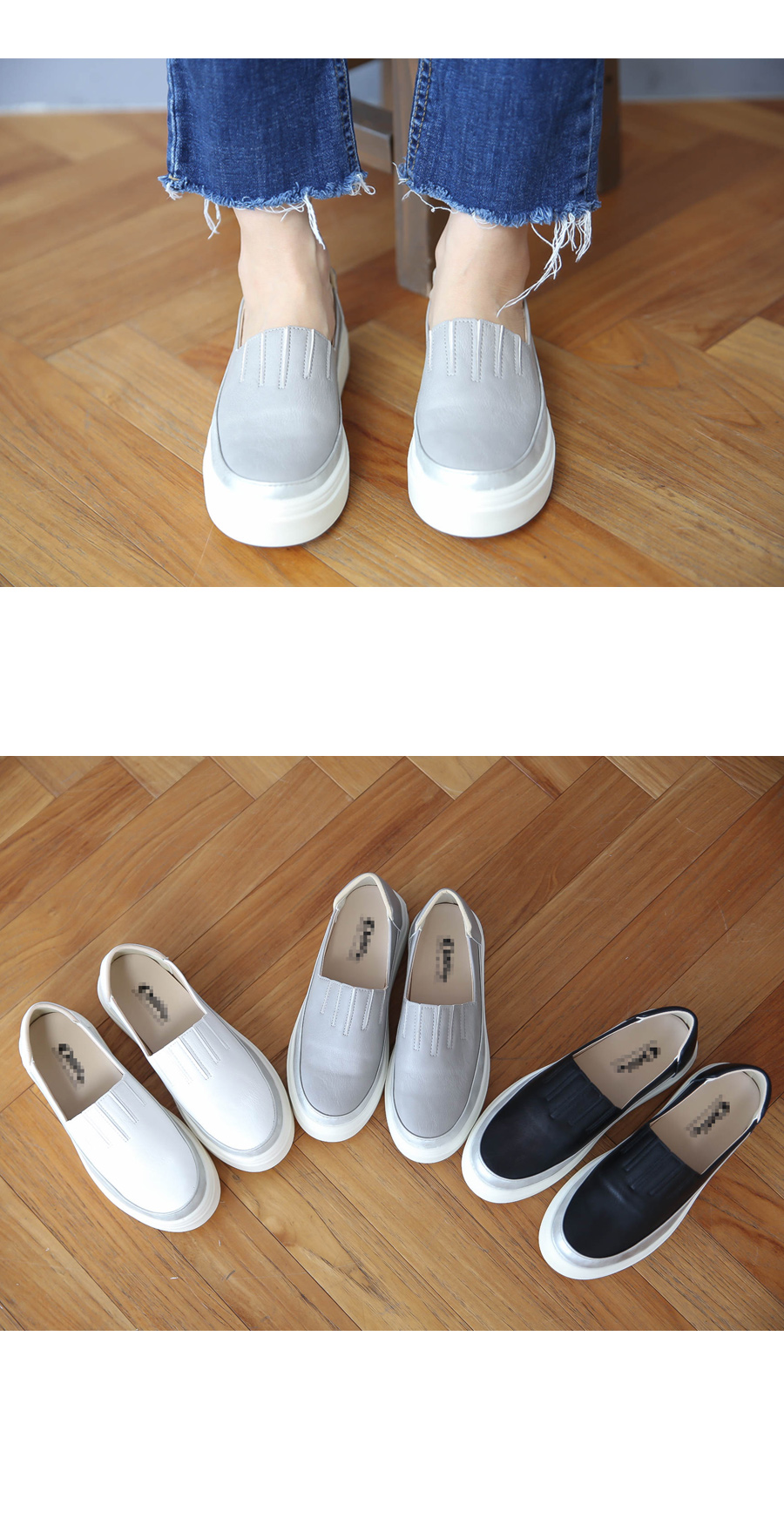 실측 사이즈는 235mm 사이즈를 기준으로 측정되었으며, 측정방법에 따라 0.3cm 정도 오차가 생길 수 있습니다.