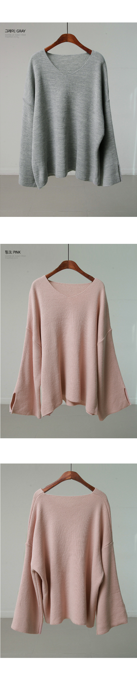 [ 소매트임 브이넥 니트 ]