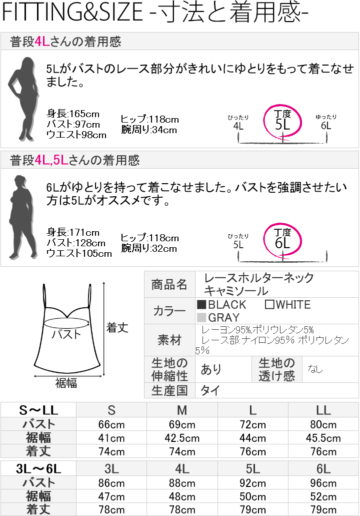 レースホルターネックキャミソール(CS) 大きいサイズ 春 セクシー レディース ギャル服 ギャル 大人 13号 15号 17号 19号 LL 2L 3L 4L 5L 6L 6L