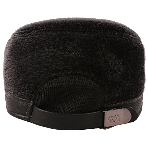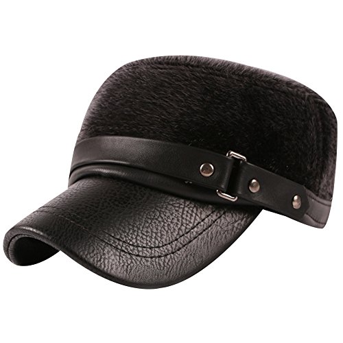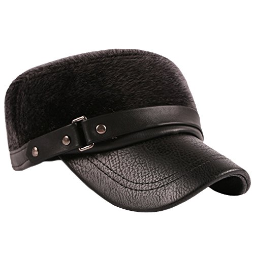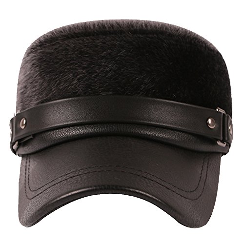 Title : Men Winter Fake Mink Fur Leather Brim Fleece Flat Top Baseball Eermuffs Caps Hat