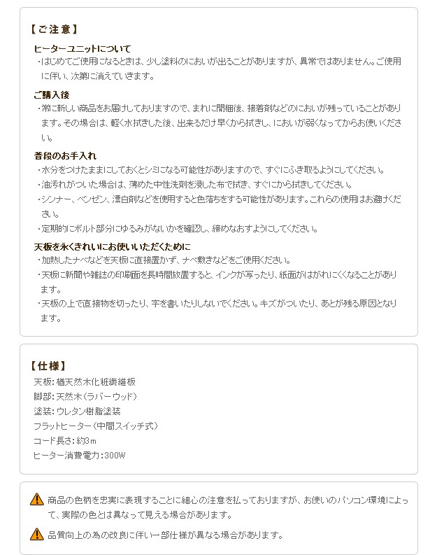 材質:天板-天然木化粧繊維板(ナラ)、こたつ布団(表地・裏地)-綿100%〔Aエステルストライプ表地-ポリエステル100%〕