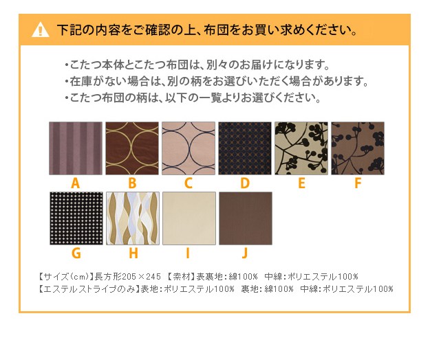 カラー:画像2参照、こたつ布団の色柄:画像3参照