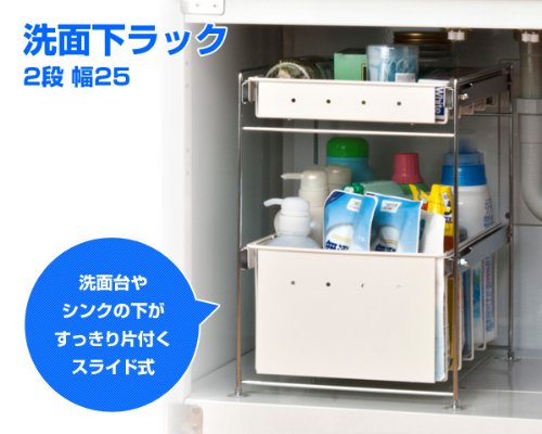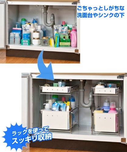● Slide-type storage rack with clean washbasin and sink under the sink
