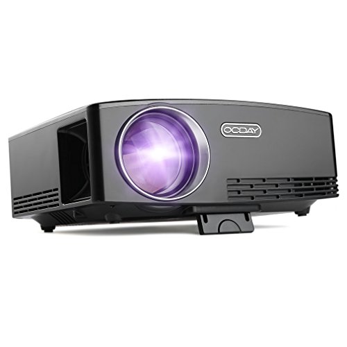 -. Feature : COMPACT & PORTABLE -- Small size and light weight of this home theater projector enables you to take it to anywhere you want. Easy to set up, a smart TV can be completely replaced. Ideal gift for Christmas and Thanksgiving. / OCDAY HIGH PERFORMANCE PROJECTOR: 1800 ansi lm LED Luminous efficiency, 220lux max brightness; Contrast Ratio: 2200:1; Native Resolution: 800x480, supports 1080p HD resolutions; Enjoy vivid and lifelike images with this mini video projector. / HOME THEATER PROJECTOR with STEREO AUDIO: Built-in amplifier chip and built-in stereo speakers (4Ω, 5W) with SRS Sound, makes the voice more powerful and fidelity, you can also connect with external audio device for better sound performance. / Adjustable Projection Distance & Projection Size: Offer 28 ~ 180inches image size and 1.2m ~ 5.5m Projection Distance. Giving you a clear frame and a projection size of up to 180 inches, you also can select the optimal size of image by adjusting the distance to obtain the best Use Experience. / OCDAY LCD MINI PROJECTOR is designed for home theater movies and video games in dark condition, NOT recommended for PPT or business or teaching presentation.