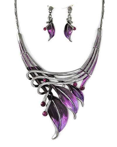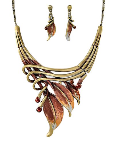 -. Binding : Jewelry -. Brand : PammyJ -. Department : womens -. Feature : This is a lovely necklace to really stand out at any party or special occasion / Necklace measures 16 inches with a 3 inch drop / Post earrings have a 1.5 inch drop / Imported -. Model : 21701 -. MPN : 21701 -. PartNumber : 21701 -. ProductGroup : Jewelry -. ProductTypeName : FASHIONOTHER -. Title : PammyJ Leaf Statement Necklace and Earrings Set, 16" + 3" Ext.