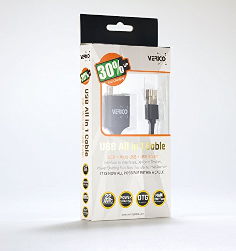 Verico VC05 USB All in one Multi-Function cable 1.2M ( Micro USB / Micro USB OTG to USB / USB socket ) for Data transfer, Inter Transfer, Charge, Inter Charge, OTG, Extension.