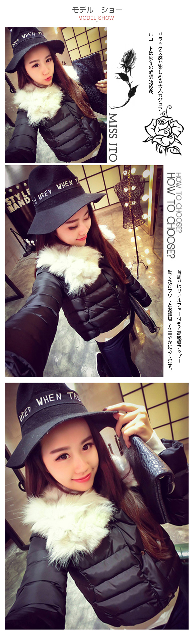 | リラックス感が楽しめる大人カジュアルコートは秋冬の必須ITEM。首周りはリアルファー付きで高級感アップ!動くたびフワリとお顔周りを華やかに彩ります。防風防寒効果顕著、小顔効果が期待できます。ショート丈なのですっきり見えてバランスもとりやすく、シーンに合わせて楽しめるアウターです!。冬が来る前に是非手に入れて欲しい、フォトジェニックな一枚!! | |