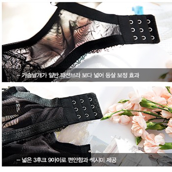 가슴날개 부분이 일반 폐션브라보다 넓어 등살을 잡아주며