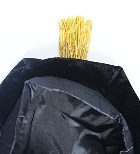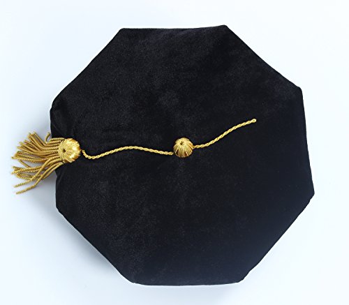 GraduationForYou Unisex Doctoral Graduation Tam Black Velvet 8-sided With Gold Bullion Tassel Satin Silk Band