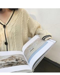 ニットカーディガン 羽織り ラインニット セーター ボタン Vネック 長袖 プチプラセール 秋冬 AW