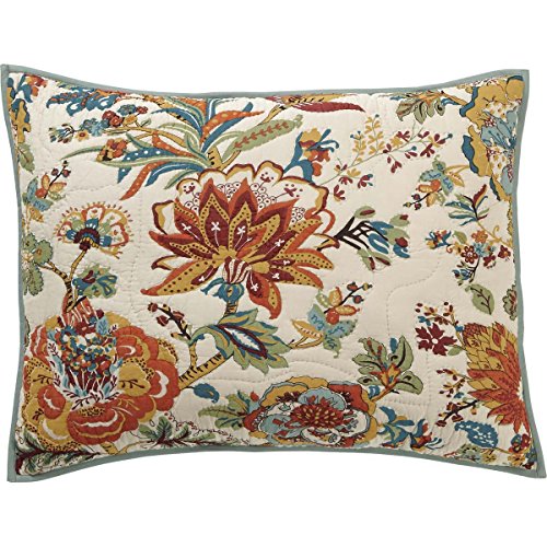 - Refreshing floral print in burnt orange, light turquoise, and other warm tones on soft cotton voile