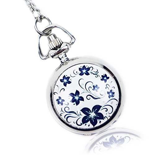 작은 꽃의 무늬가 매우 작고 예쁘장스럽고, 품위가 있는디자인의 회중 시계입니다.