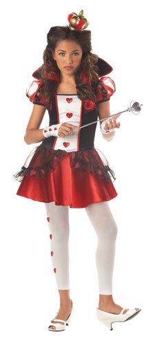 -. Brand : California Costumes -. Color : Multi-Colored -. Department : girls -. Feature : Available in Sizes: Large and XL / Item Includes: Dress, Glovelettes, Leggings and Crown / Pictured items not included: Shoes and Scepter / Material: Dress: 100% Polyester Exclusive of Decoration Sleeve Red Portion/Skirt Blk Portion: 100% Nylon -. Label : California Costumes -. Manufacturer : California Costumes -. ProductGroup : Toy -. ProductTypeName : APPAREL -. Publisher : California Costumes -. Studio : California Costumes -. Title : Girls Queen of Hearts Halloween Costume
