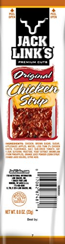 Perfectly seasoned, white-meat chicken goodness. A lean, mean, protein-packed machine with a hint of sweetness and 6g of protein Jack Link’s Steaks and Strips are made from premium strips of lean beef, turkey or chicken seasoned with a unique blend of spices and hickory smoked for a softer, more tender chew than traditional jerky with all of the satisfying taste. Jack Link’s beef steak varieties and flavors include Original, Teriyaki, Peppered, Sweet Hot, KC Masterpiece Barbecue and Steakhouse Recipe. Jack Link’s also makes Original Turkey and Chicken Strips. 0 |