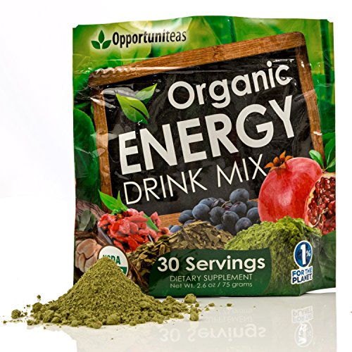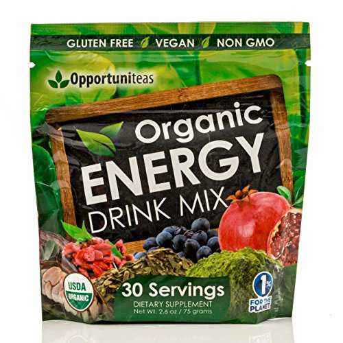 -. Binding : Health and Beauty -. Brand : Opportuniteas -. Color : Green -. EAN : 0728028400717 -. Feature : ORGANIC ENERGY POWDER ★ If you're working long hours, slowing down pre or post workout, or just trying to keep up with your kids, finally get the natural energy you've been missing now. / SAFE & EFFECTIVE ★ Most energy drinks and shots use cheap, artificial ingredients. We don't! Our energy drink mix uses only organic superfoods that contain natural caffeine without any added sugar or sweeteners. / MONEY BACK GUARANTEE ★ If you don't love the way you feel, then you get your money back - no questions asked. / MIX IN ANY DRINK ★ Put one small scoop in your favorite drinks like smoothies, juice, tea, protein shakes, and more for a lasting boost of pure organic energy. / BETTER THAN COFFEE ★ While a cup of coffee is great, what good is all that energy when you can't seem to think clearly? Our organic energy drink mix is packed with organic superfoods and so you will be productive. -. IsAdultProduct : 0 -. Label : Opportuniteas -. LegalDisclaimer : These statements have not been evaluated by the Food and Drug Administration. This product is not intended to diagnose, treat, cure or prevent any disease. -. Manufacturer : Opportuniteas -. MPN : OEDM -. PackageQuantity : 1 -. PartNumber : OEDM -. ProductGroup : Health and Beauty -. ProductTypeName : HEALTH_PERSONAL_CARE -. Publisher : Opportuniteas -. Size : 75 grams -. Studio : Opportuniteas -. Title : Organic Energy Drink Mix | Matcha Green Tea + Yerba Mate + Cacao + Goji Berry + Pomegranate + Maqui Berry | Natural Caffeine Pre-Workout Supplement Powder | Gluten Free + Vegan + Non GMO -. UPC : 728028400717