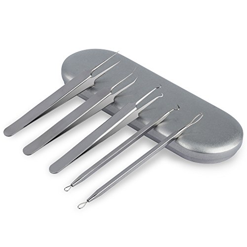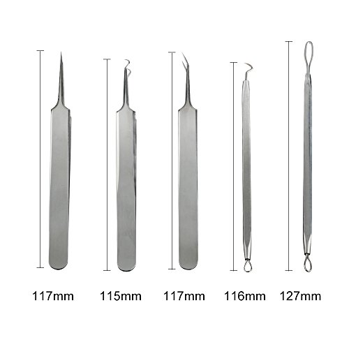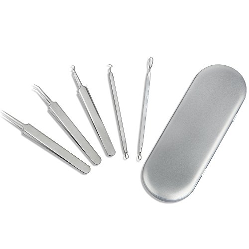 HailiCare Blackhead Removal Kit, 5pcs Set Professional Stainless Steel Extractors for Blemish, Acne, Pimple, Blackhead, Whiteheads Removal