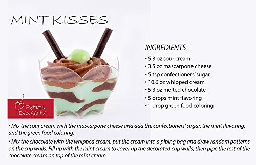 Perfect size for one bite-size dessert, finger food, and small confectionery at birthday parties, weddings, anniversaries, Thanksgiving, Christmas, Easter, Bar Mitzvah, Confirmation, Halloween, Independence day, and other holidays. Desserts in cups are an elegant replacement for cupcakes, mignons, muffins or souffle, but more elegant and luxury looking and easy to make. Only Petits Desserts cups are so unique and appealing that make Your desserts even more tempting. Dare to be different and amaze everyone. Be different and amaze everyone with cup desserts Amaze Your friends at the party with unique cute cups they haven't seen before and thus make Your desserts even more tempting. 0
