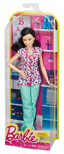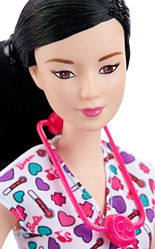 -. Binding : Toy -. Brand : Barbie -. EAN : 0887961206258 -. Feature : Be anything with Barbie career dolls! / Barbie nurse doll brightens her patients' days in colorful scrubs with pink shoes / A matching stethoscope will help save the day and ensure she keeps her patients healthy / Collect all the Barbie career dolls to expand the professional storytelling fun / What do you want to be when you grow up? -. IsAdultProduct : 0 -. Label : Mattel -. Manufacturer : Mattel -. Model : DHB21 -. MPN : DHB21 -. PackageQuantity : 1 -. PartNumber : DHB21 -. ProductGroup : Toy -. ProductTypeName : TOYS_AND_GAMES -. Publisher : Mattel -. Studio : Mattel -. Title : Barbie Careers Nurse Doll, Asian -. UPC : 887961206258 -. Warranty : 1 year warranty against manufacturer defects