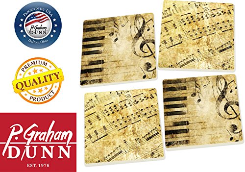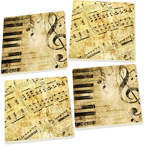 Faded Music Notes 4 Piece Square Ceramic Coaster Set