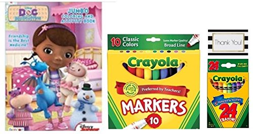 Feature : 64 Coloring and Activity Pages Featuring Characters From Doc McStuffins / 24ct Nontoxic Crayola Crayons / 10ct Nontoxic Crayola Classic Broad Line Markers / Tear and Share Pages / Includes FREE Thank You card brought to you only by Chicago Products Direct