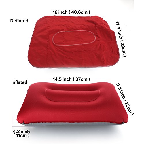 INFLATABLE - Inflate pillow in just a couple of breaths with the multi-functional valve , the camping pillow can be blown up with a double-decked air valve. To deflate, just open the bottom of value and squeeze the air out , it just take a few seconds.