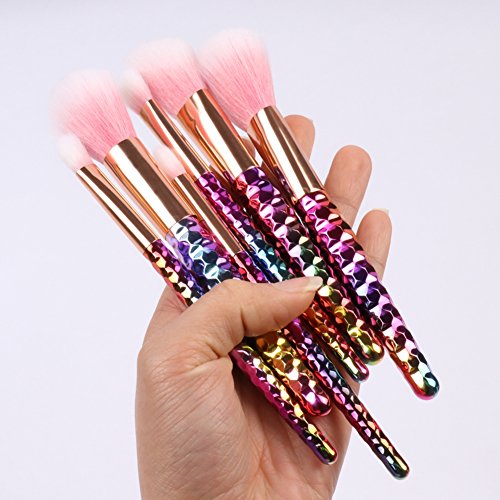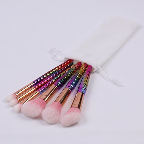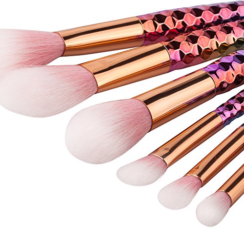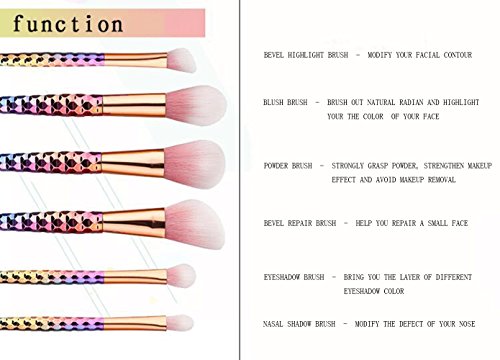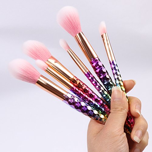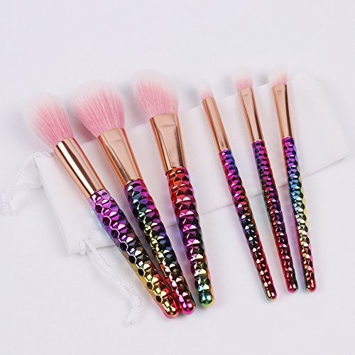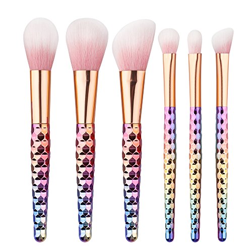 ILOBE 2017 Vegan Hair Makeup Brushes Set - 6 Piece Rainbow Handle Cosmetic Brush Application Powder Blush Eyeshadow