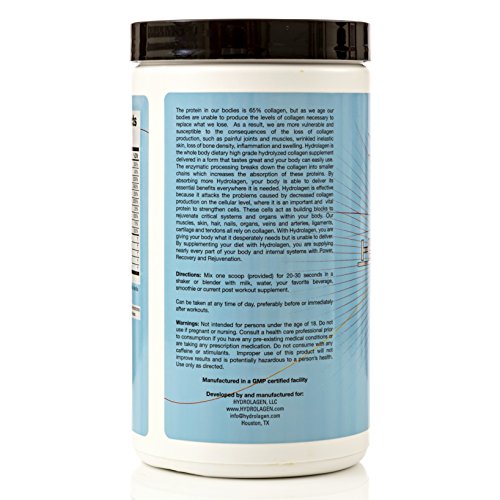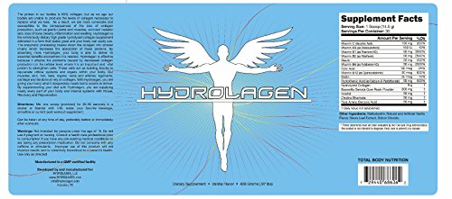 -. Binding : Health and Beauty -. Brand : Hydrolagen -. Department : Health & Personal Care -. EAN : 0729440686062 -. Feature : ENJOY THE BENEFITS OF THE UNIQUE COMBINATION OF HYDROLYZED COLLAGEN WITH VITAMINS: Stop using low quality supplements that provide you with hydrolyzed collagen that has very little to offer. Hydrolagen contains all the vitamins that are necessary for your body so as to use hydrolyzed collagen and make new tissue. / REDUCE SIGNS OF AGING AND ACQUIRE A YOUTHFUL APPEARANCE: Trust this unique anti-aging collagen supplement and reduce wrinkles and signs of aging. Hydrolagen helps your skin retain its elasticity and makes it look and feel young and healthy. / PREVENT JOINT PAIN AND FEEL FREE TO FOLLOW AN ACTIVE LIFESTYLE: Experiencing joint pain can be really unpleasant. Now, you can work out on a regular basis without going through any pain thanks to this collagen joint supplement that helps prevent joint degeneration. / BOOST YOUR HEALTH AND PROTECT YOUR BODY: Enjoy maximum benefits and maintain an excellent healthy condition. Hydrolagen has been specially formulated to aid the weight loss process. It helps reduce cholesterol levels and lower blood pressure. This advanced collagen supplement will also help you get sick less often or not at all. / 100% MONEY BACK GUARANTEE: Keeping you healthy and satisfied is our priority. This is why we offer you a full refund for 90 days in case this collagen supplement does not meet all your demands. -. IsAdultProduct : 0 -. Label : Hydrolagen, LLC -. LegalDisclaimer : Must be at least 18 or over to purchase -. Manufacturer : Hydrolagen, LLC -. PackageQuantity : 1 -. ProductGroup : Health and Beauty -. ProductTypeName : HEALTH_PERSONAL_CARE -. Publisher : Hydrolagen, LLC -. Size : 30 Day Supply -. Studio : Hydrolagen, LLC -. Title : Hydrolagen with Hydrolyzed Collagen and Vitamins C, D, B1, B2, Niacin, B6, Folic Acid, B12, Biotin, PABA, Boswelilia, Inositol, Choline Bitartrate, Panthothenic Acid -. UPC : 729440686062