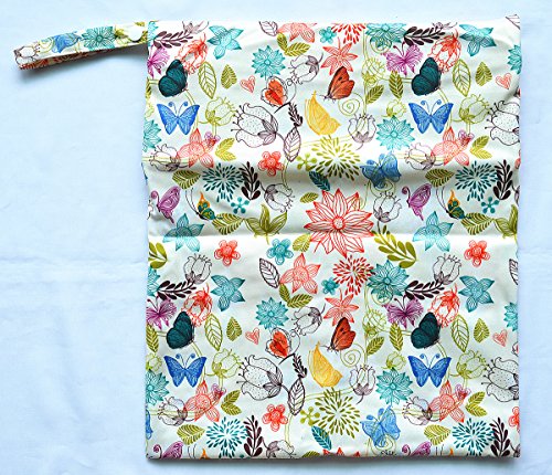 Wet Dry Bag Baby Cloth Diaper Nappy Bag Reusable with Two Zippered Pockets (Bloom)