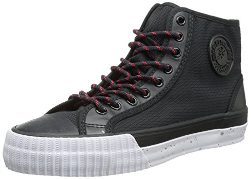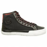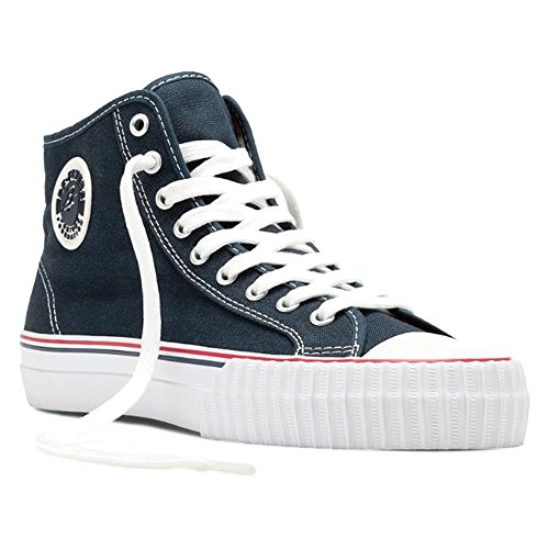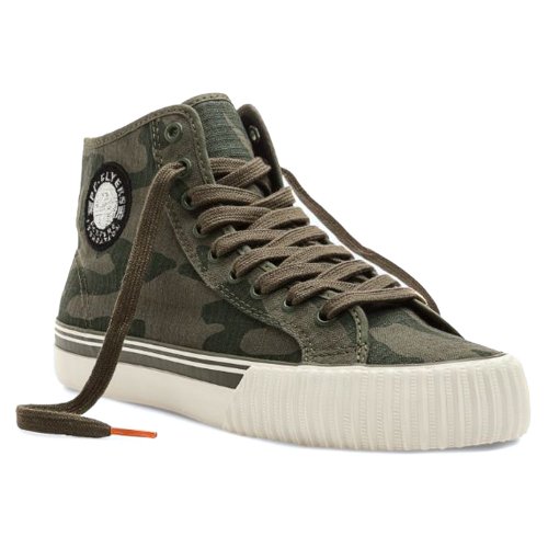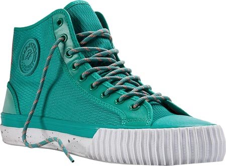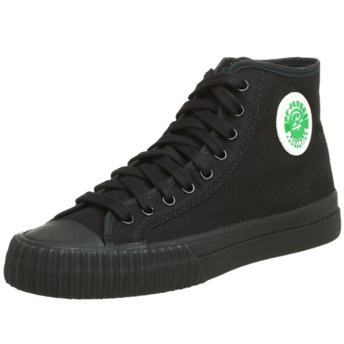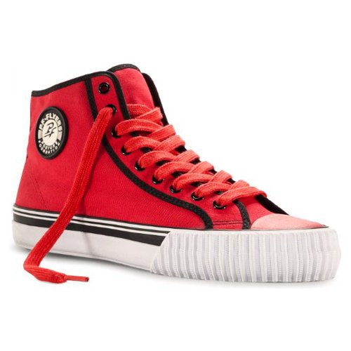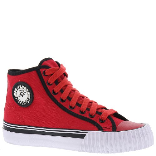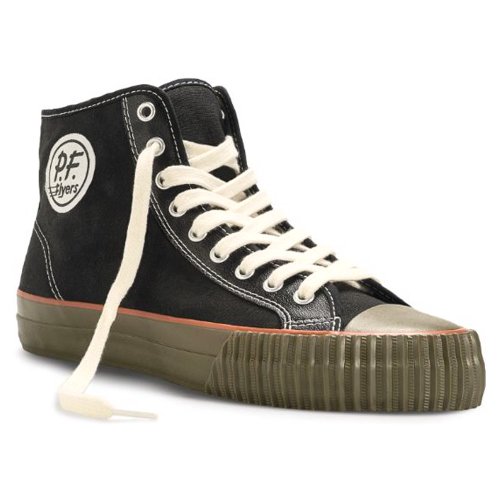 Cool, different, and comfortable, these retro hi-top sneakers are the real thing!. With original designs from the past these shoes feature the exclusive Posture Foundation insole (PF) for body-aligning arch support and performance. Canvas or leather uppers. Classic vulcanized rubber construction. Heritage and railroad foxing tape and trim. Original rubberized PF Flyers ankle medallion. Removable reissue insole with rigid (PF) Posture Foundation Wedge. Gum rubber colored outsole.Feature