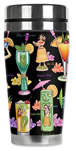 Mugzie 3210-MAX "Tropical Drinks" Stainless Steel Travel Mug with Insulated Wetsuit Cover, 20 oz, Black