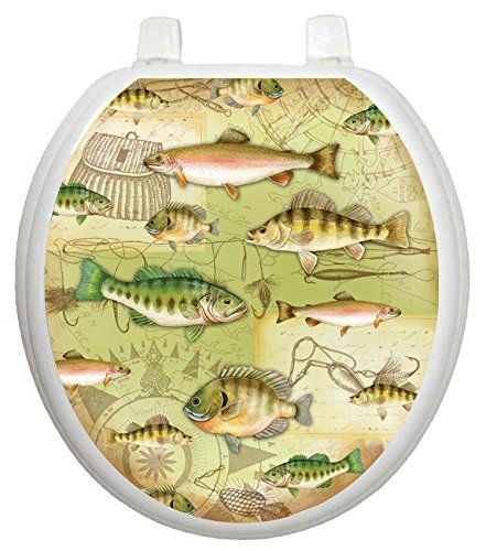 -. Title : Toilet Tattoos TT-1094-R Gone Fishing Toilet Lid Applique, Round
