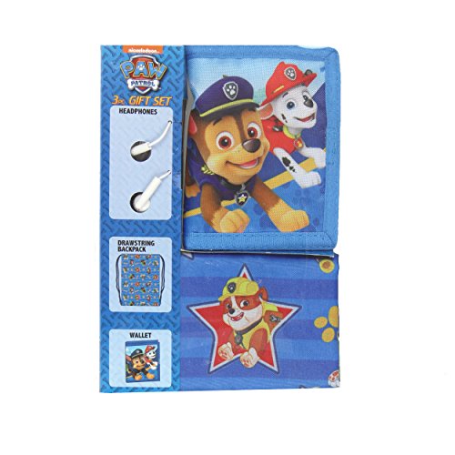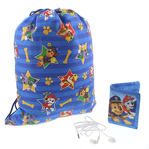 Product Description These awesome 3 piece gift sets include a drawstring backpack, a set of headphones, and a wallet or coin purse! These boxed gift sets feature some of your favorite Nickelodeon characters from your favorite shows, Paw Patrol and Shimmer and Shine! The boys sets include a bi-fold wallet with a hook and loop closure and the girls sets include a coin purse with a zipper closure. Your child can easily carry books, gym clothes, school supplies, snacks, and more with these cool cinch sack bags! This gift set is perfect for any Nickelodeon fan and they make a great stocking stuffer for the holidays! Choose your favorite or collect them all! 0