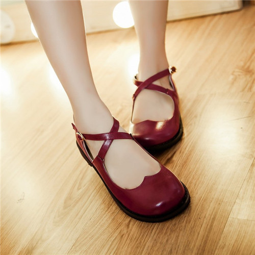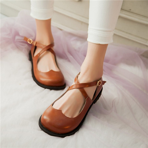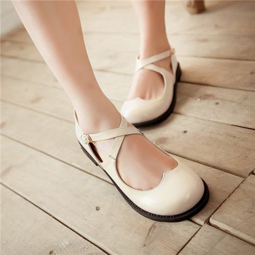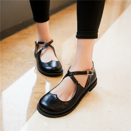 Fashion New Sweet Womens Round Toe Casual Flats Buckle Cross Strap Mary Jane Girls Ballet Flats Shoes Plus Size