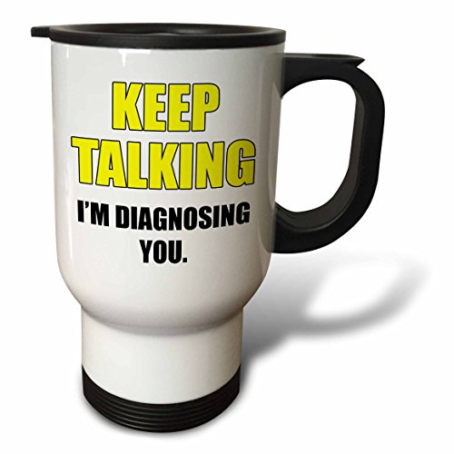 3dRose Keep Talking I'm Diagnosing You. Yellow and Black. Travel Mug, 14 oz, Stainless Steel, White