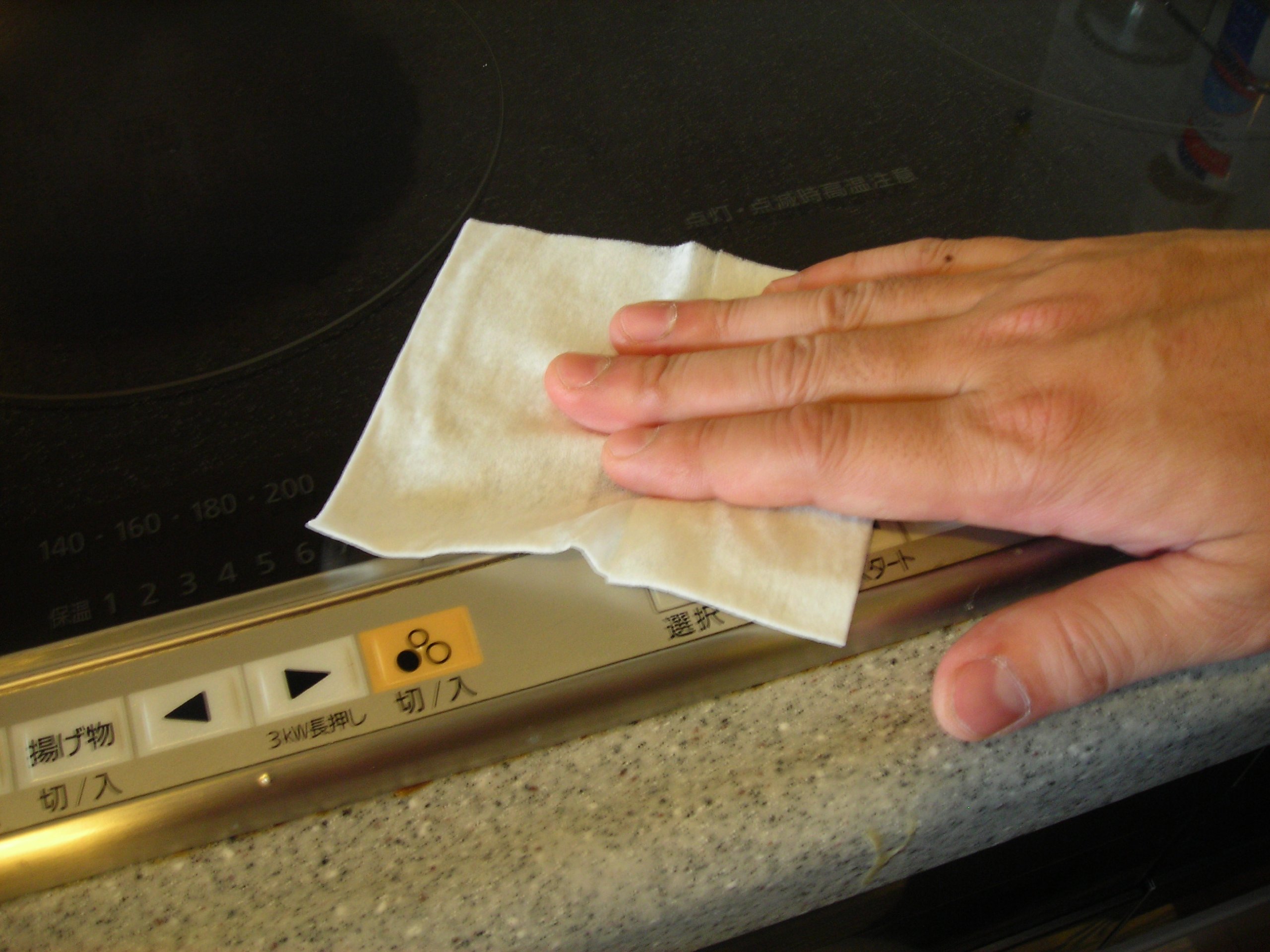 Wipe quickly with a stove, ventilation fan, dirt on the wall and quickly clean.