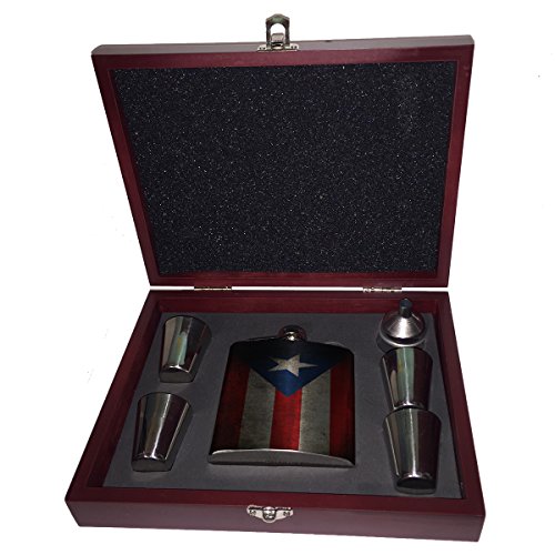 -. Title : Puerto Rico Flag - Flask Wood Box Gift Set