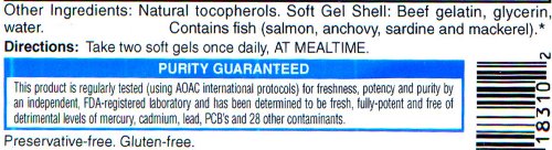 -. Feature : Easy-to-swallow soft gels / Offers a full range of omegas / Fresh, fully potent and free of detrimental levels of mercury, cadmium, lead, PCB's and 28 other contaminants