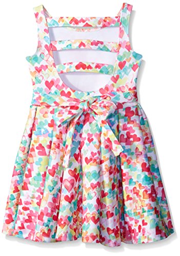 It's pretty much impossible not to smile when you're wearing this festive heart print dress. In easy care and modern scuba knit, the full pleated skirt is just perfect for twirling. The strappy open back detailing adds an extra measure of fun.