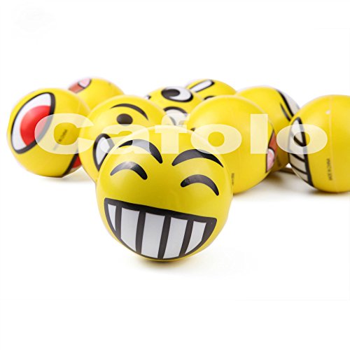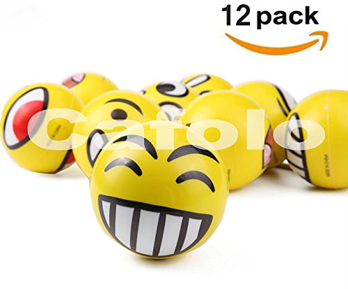 12(1 Dozen) ~ 3" Assorted Big Happy Emoji Face Squeeze Balls For Stress Reducer / Anxiety Relie...