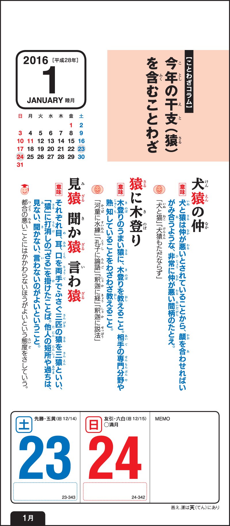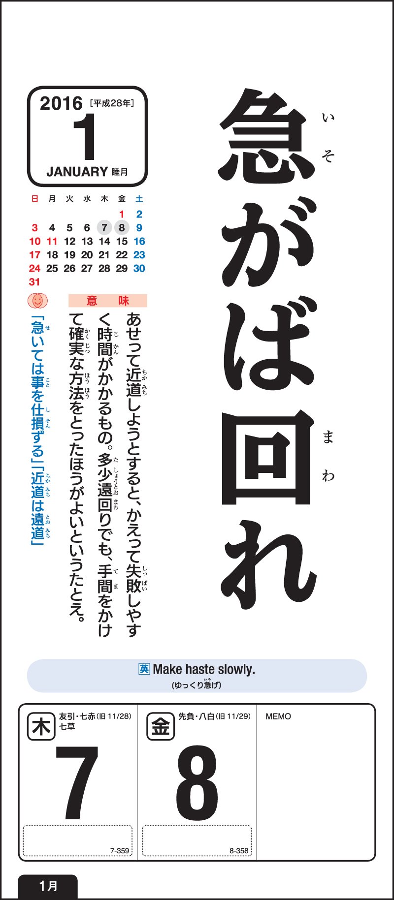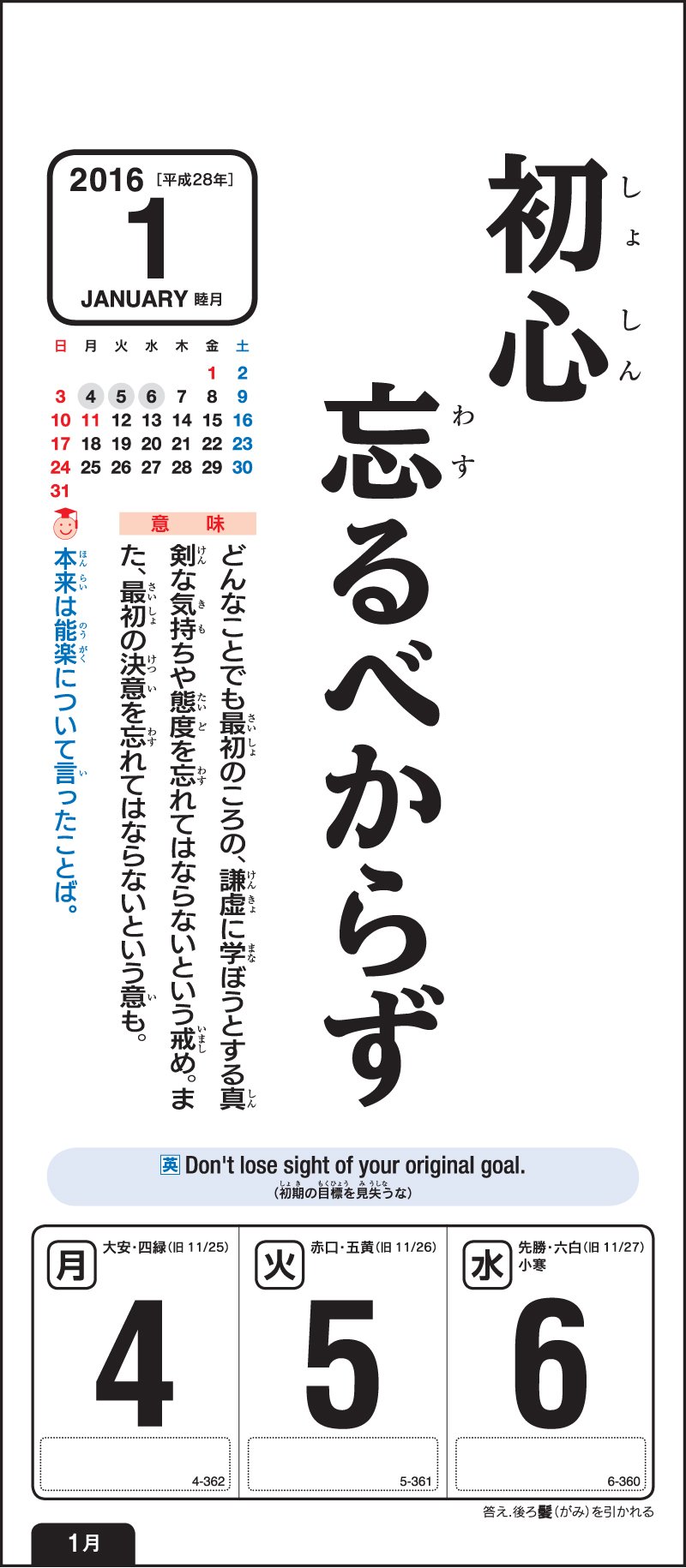 Since it is a calendar you see every day, you will acquire nature and a proverb.