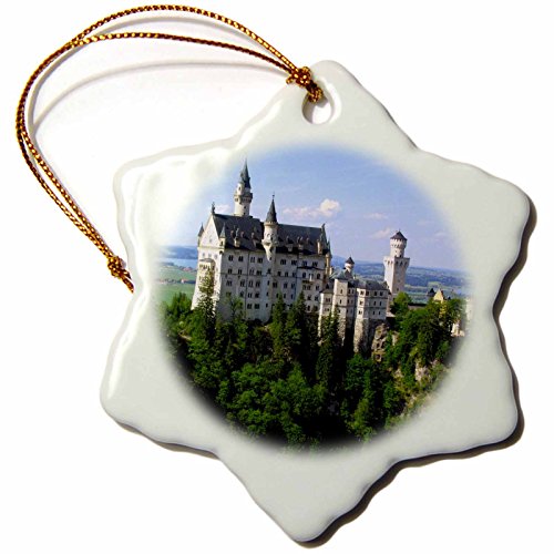 3dRose orn_155648_1 Neuschwanstein Castle Famous Schloss in Germany Fairy Tale Palace Architecture Snowflake Ornament, Porcelain, 3-Inch