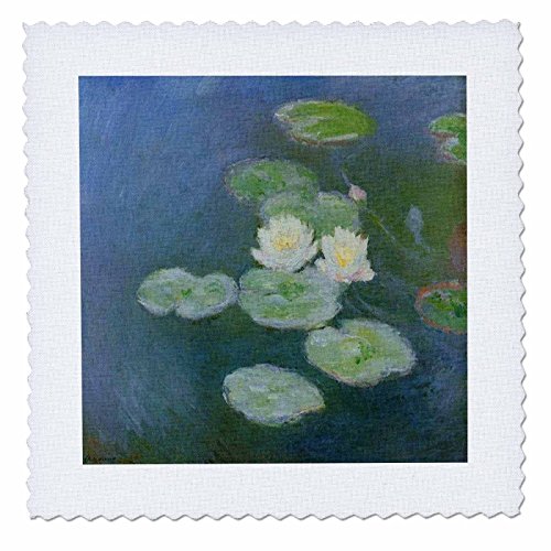 3dRose qs_203682_4 Print of Monet Painting Water Lilies Evening Effect Quilt Square, 12 by 12"