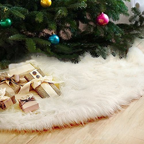Mangadua Plush Christmas Tree Skirt Party Decoration,Ivory (78cm/30.4")