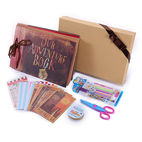 Our Adventure Book Pixar Up Handmade DIY Family Scrapbook , Wedding Photo Album, Retro Album, Anniversary Scrapbook, Child’s Album ,with Bonus Gift Box