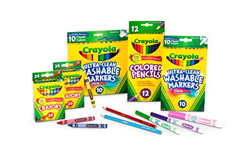 The Crayola Back to School 2017 Set Grades K-2 includes everything young artists need to color and draw in the classroom. Designed for kids in kindergarten through 2nd grade, this versatile coloring set includes Crayola crayons, colored pencils, and broad and fine line markers. Crayola Crayons offer 24 vibrant colors and are great for everyday coloring activities, while the colored pencils are ideal for color mixing, blending, and practicing more detailed coloring techniques. The included Ultra-Clean Broad Line and Fine Line Washable Markers offer the versatility to color in large areas as well as smaller, more detailed sections. These markers feature an Ultra-Clean formula that washes easily from skin, clothing, and other surfaces. Great for creative play in the classroom or at home, the vivid colors and variety of mediums in the Crayola Back to School 2017 Set Grades K-2 will inspire children's self-expression and imagination.Feature