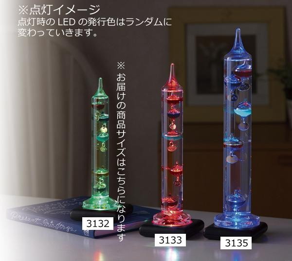 | カラフルなボールが浮き沈みして温度を示すユニークな温度計にコースターライトをセット。赤、青、緑の光がオーロラのように輝きます。 |
