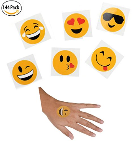 -. Feature : DESIGN: Emoji Face Tattoos. These 2" Emoji tattoos will make anyone smile. Give these Emoji faces as rewards for good deeds! Fun to wear and easy to apply and remove. Safe and non-toxic. / FEATURES: Temporary Emoji skin art! These tattoos make great P.R.Izes at school carnivals and other party events! / PACKAGE CONTENTS: 144 emoji Tatoos. Assorted designs / INTENDED USE: GREAT FOR KIDS, GREAT FOR PARTY FAVORS, Carnival P.R.Izes, and more!