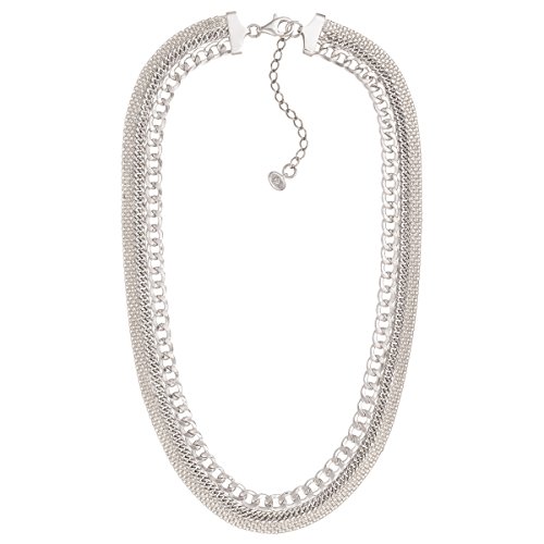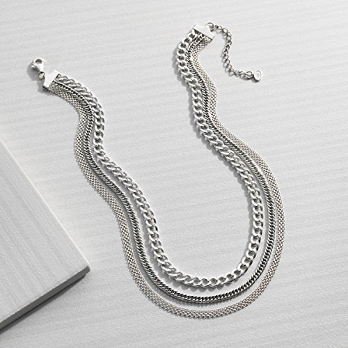Link up with the Layered Chain Necklace, which features three chunky chains in sterling silver for a bold, statement-making look. The curb-style chain measures 18 inches in total length (including a 2-inch extender) and is finished with a lobster clasp. Piece comes with a ".925" sterling silver stamp as a symbol of guaranteed product quality.