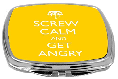 Rikki Knight Compact Mirror, Screw Calm and Get Angry Yellow